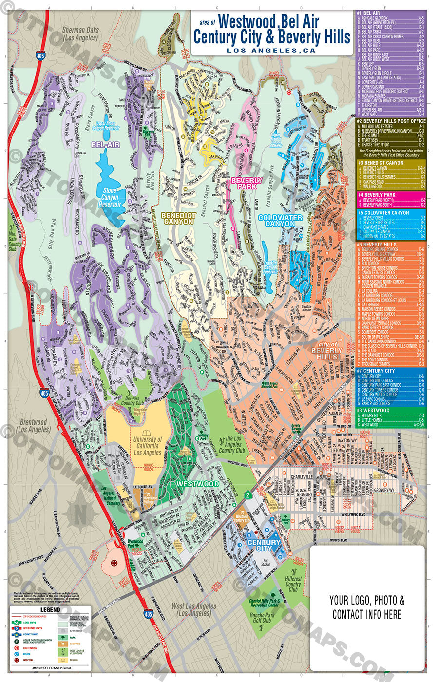 Beverly Hills, Bel Air, Westwood, Century City Map Los Angeles