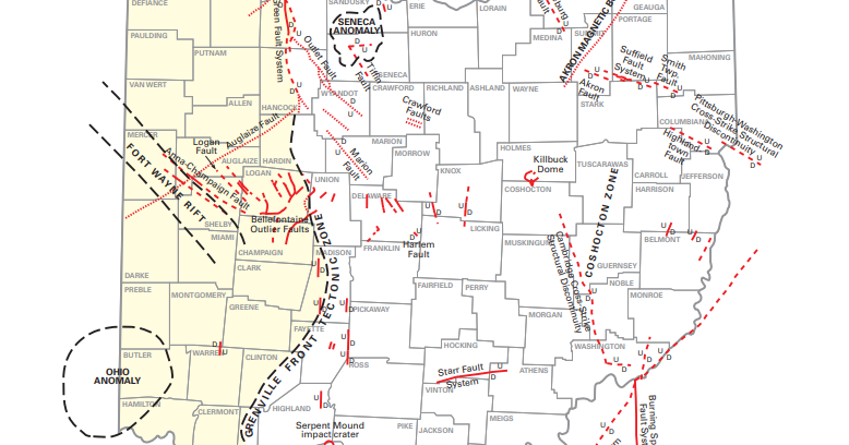 Map Of Ohio Fault Lines – you can quickly see the California Geological Survey maps and whether or not your home or property falls on a fault line. “The idea is you don’t want to build your house on an active fault and it . The California Geological Survey owes its existence to the gold rush to help out mining efforts but soon after, it branched into making statewide geologic maps showing fault lines and earthquake .